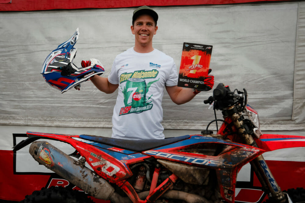 “I’m lost for words right now,” Holcombe said. “It’s hard to explain how much winning this EnduroGP title on the 350F means to both Beta Motorcycles and myself. Today was a crazy day, in a way I guess it’s fitting for how strange 2020 has been. I was behind [and]…not able to find the speed I had on day one. But I just tried to keep fighting and hoping for a break. When the weather turned, things changed, and, well, here I am as world champion. I feel for Brad because he was doing everything right, but in an instant his luck was out. Unfortunately, that’s racing—I’ve been there before and know how that feels.”