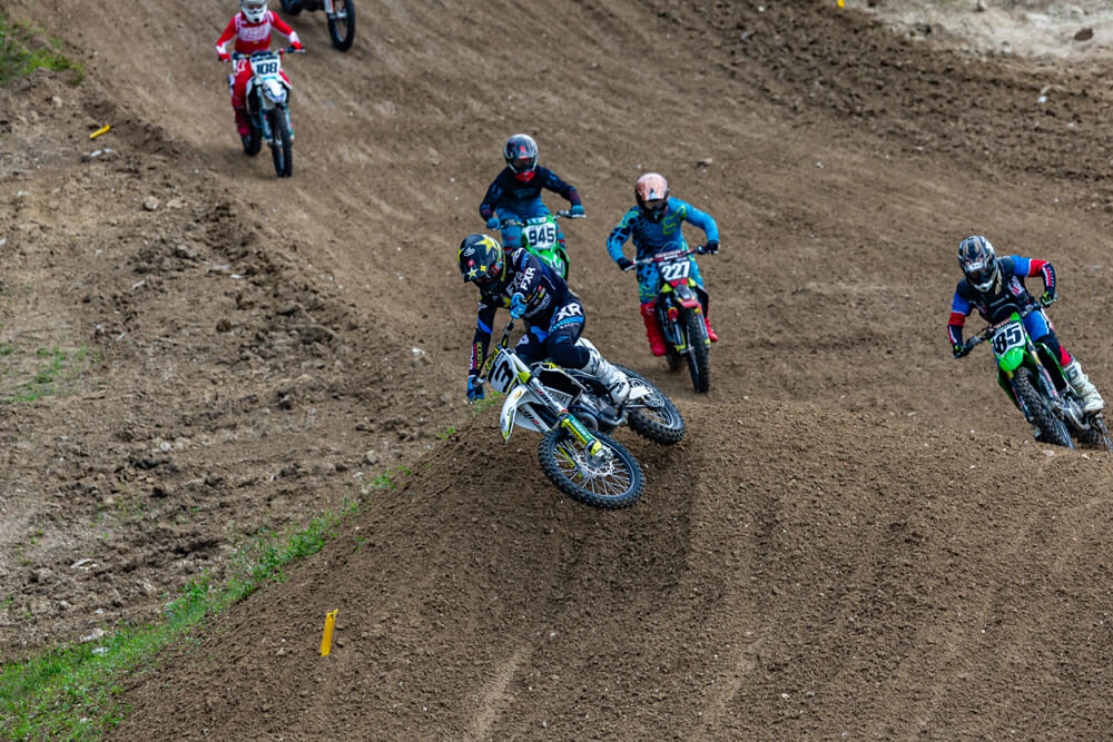 The big battle in the class was the one for third, with Honda riders Kobe Heffner and Cullin Park, Brandon Scharer and Matt LeBlanc, both on Yamaha’s, battling for the position. Midway into the race, Heffner ran off the course, handing third to Park, with Scharer closing. On lap eight, Scharer moved ahead of Park for third and the die was cast. At the finish, the order was Kitchen, Amerine and Scharer.