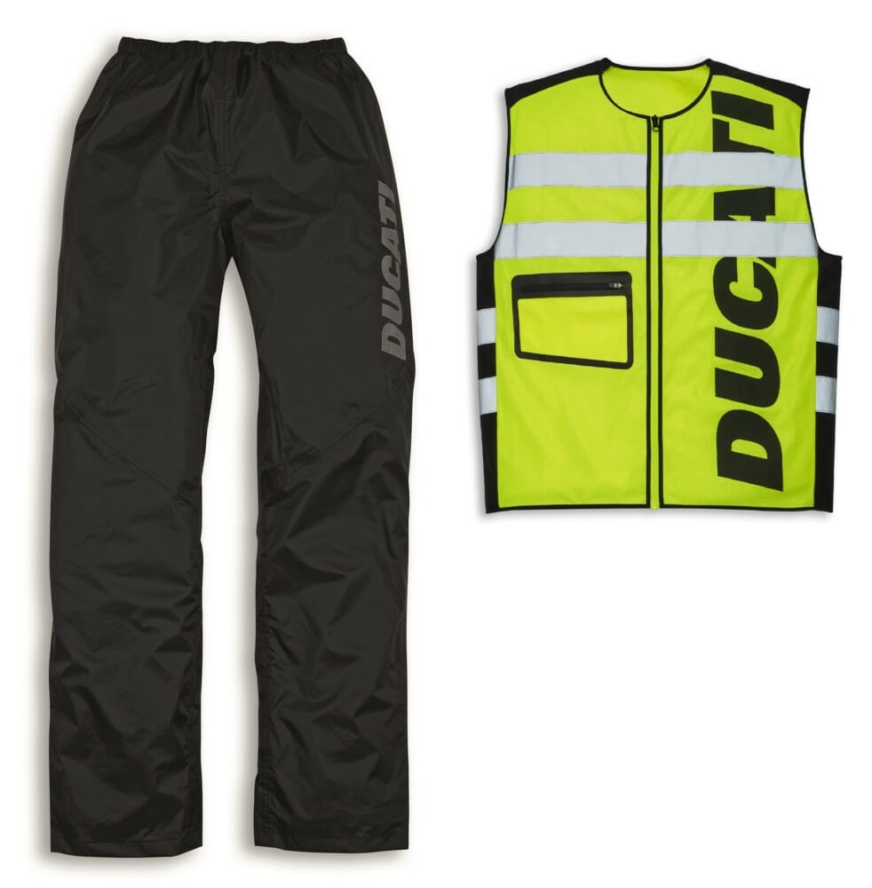 New in the 2021 Touring clothing line are the Aqua rainproof jacket and trousers that represents the top of the range in terms of features and design: lightweight, durable, practical, and easy to put on, they can be packed into a pouch. Created on the basis of specific briefings by Ducati testers, thanks to the choice of fabrics and workmanship, these products have an excellent waterproof rating even in extreme conditions.