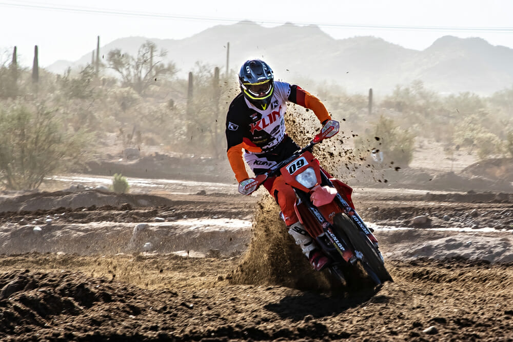 Sponsored by RideNow Motorsports and Roadhouse, the course had no shortcomings of high speeds and big-air tabletops in the motocross section, and physically demanding deep desert-wash soil. Race day began as a sunny, chilly and dry day at Canyon Motocross with racers from all over coming together for their chance at the podium. Saturday was packed full of nine total races, with the main event being the 2-hour long Team Race.