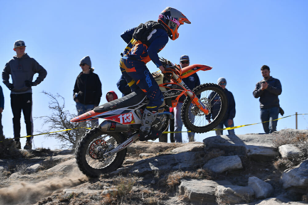 In Pro Women, reigning champ Britney Gallegos took top honors aboard her Elite Off-road Husqvarna though she had to fend off Full Factory Offroad KTM’s Rachel Stout for most of the race. Just three seconds separated them at the finish while Beta’s Morgan Tanke-Colon—the round-one winner—was third in class.