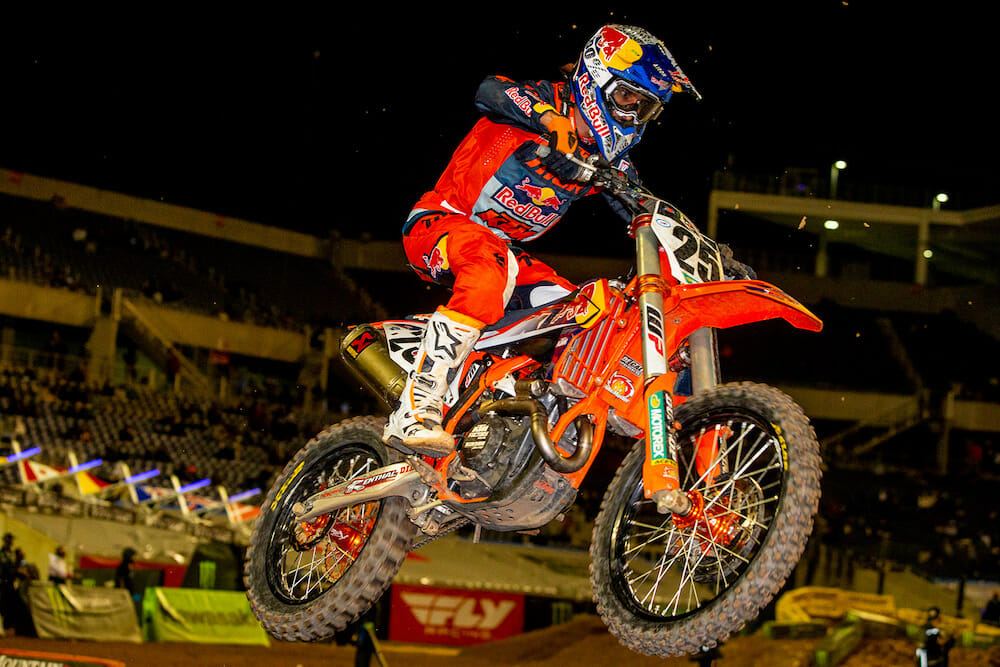 Last week’s winner Cooper Webb (Red Bull KTM) qualified second, and Dylan Ferrandis (Monster Energy Star Racing Yamaha) surprised everyone by setting the third-quickest time of the afternoon—it’s not that he’s not capable of going that fast but he’s still sore from last week’s crash (chest).