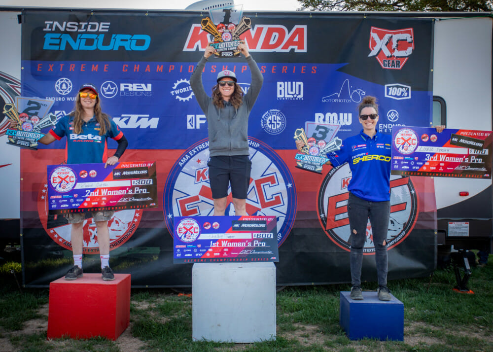 In the women’s class, Canadian Shelby Turner took the win on her KTM. It was a tough race with a total time of two hours, 3 minutes, and 30 seconds for the winner. Beta rider Rachel Gutish finished 3 minutes and 30 seconds back. Louise Forsley rounded out the podium on her Sherco, 5 minutes and 7 seconds behind Turner.