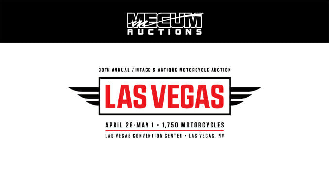Walworth, WI (April 15, 2021) – Mecum Auctions’ annual vintage and antique motorcycle auction will take place this April 28-May 1 at the Las Vegas Convention Center featuring an estimated 1750 motorcycles to cross the auction block. Celebrating its 30th anniversary year, the event is recognized as the largest global gathering of consignors, buyers and spectators who share a passion for the history, beauty and camaraderie invoked and inspired by vintage and antique motorcycles.