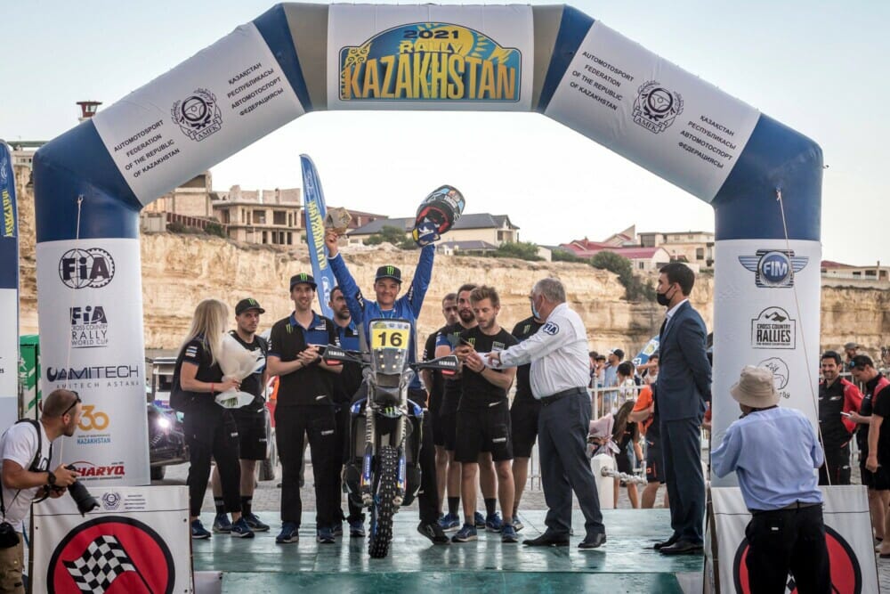 Monster Energy Yamaha Rally Team’s Ross Branch has claimed victory at the opening round of the 2021 FIM Cross-Country Rallies World Championship, Rally Kazakhstan.