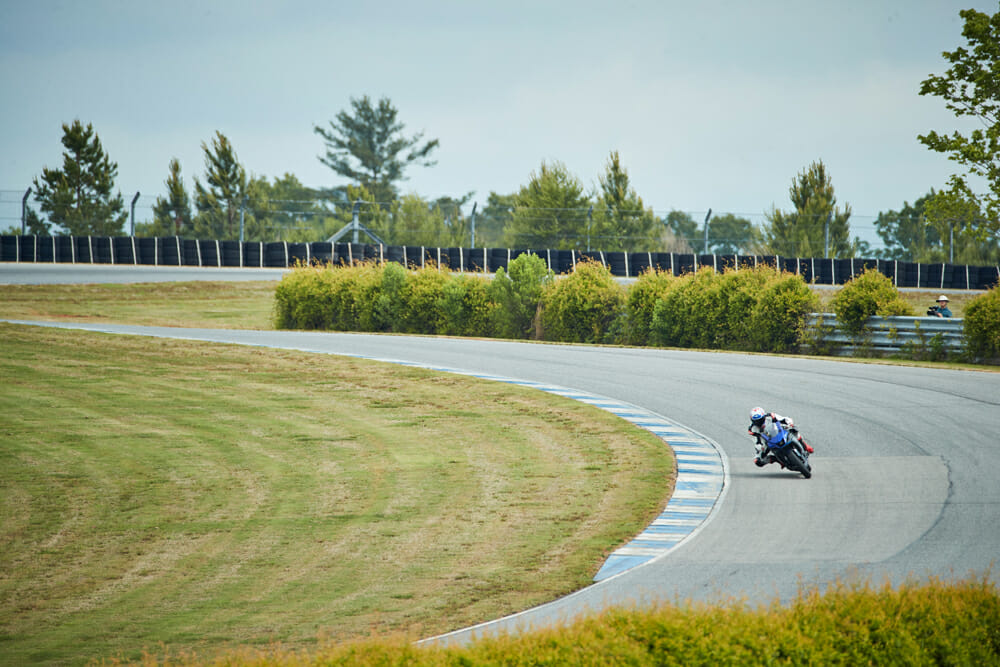 The softness of the front began to become a problem when myself, Michael Gilbert and Josh Hayes really started to push the R7s but up until that point the trade-off in compliance was worth it. Never did the R7 get out of shape—it was simply a great dance partner to have around the undulating Atlanta Motorsports Park.