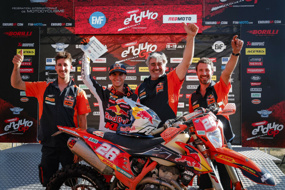 The KTM rider started the weekend with the fastest time in Friday’s Super Test. The fantastic initial performance got Garcia onto the right foot for Saturday to claim his first victory of the season in EnduroGP after an extremely demanding day due to the heat and toughness of the specials, especially the enduro sand test. It was there that Garcia took advantage of his rivals’ mistakes, and minimized his own, to win by almost 10 seconds.