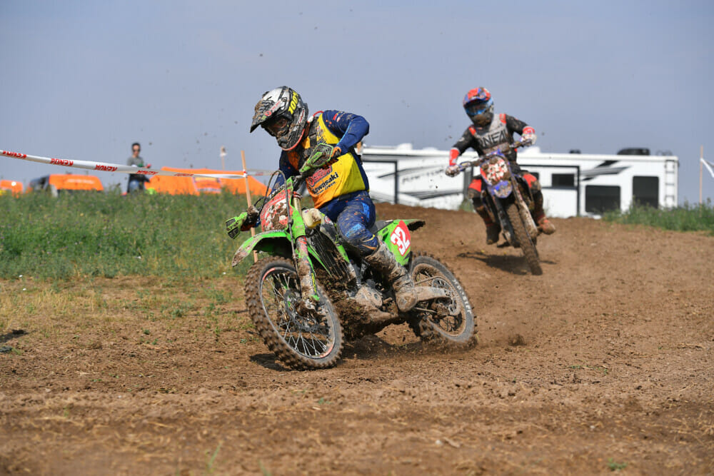 Storms in the week leading up to the race as well as on Saturday night introduced a new element for competitors to deal with and made conditions quite unlike last year’s debut visit to the facility. The rain turned the normally hard-surfaced clay beneath the alfalfa and corn fields into a veritable skating rink for both morning’s events. Though it dried considerably for the 90-minute, $8000 feature race on Sunday afternoon, deep ruts in nearly every turn tested everyone’s ability and bike prep to the utmost.