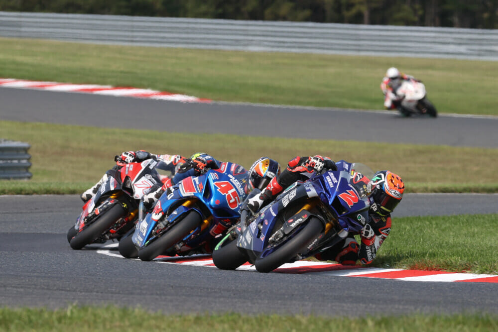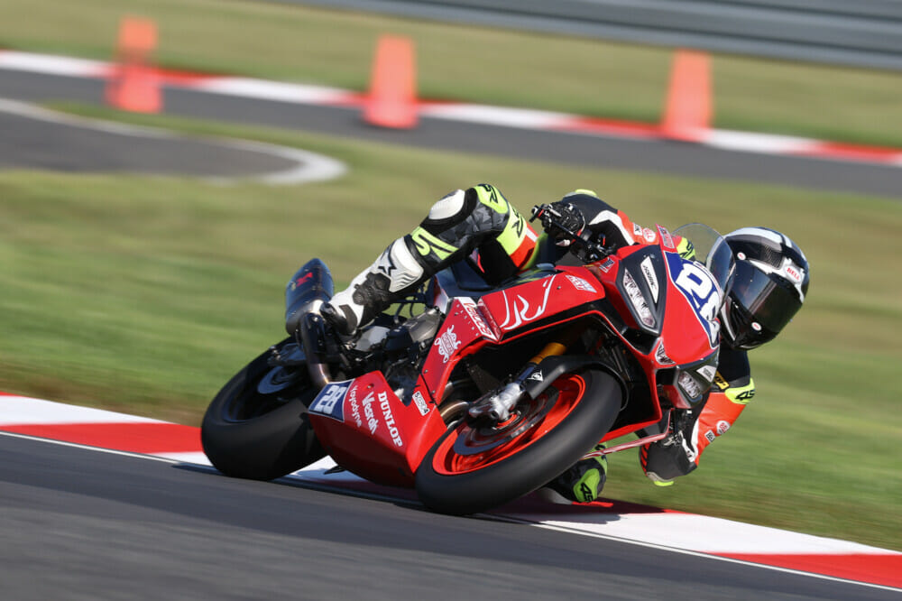Herrin, meanwhile, was in his comeback weekend after suffering from COVID-19 that forced him out of two rounds of the series. If Herrin’s life wasn’t hectic enough in the past few months, his wife, Rachel, also gave birth to the couple’s first child this week. He put in a tough day’s work on Sunday, however, and came out on top of two hard-fought battles with Warhorse HSBK Racing Ducati New York’s Loris Baz.