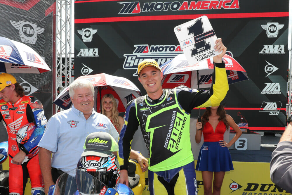 Ask any motorcycle road racer, and pretty much all of them will say that the best way to wrap up a championship is to win the race when you clinch. And that’s exactly what happened for Altus Motorsports Suzuki rider Jake Lewis in the weekend’s only Stock 1000 race.
