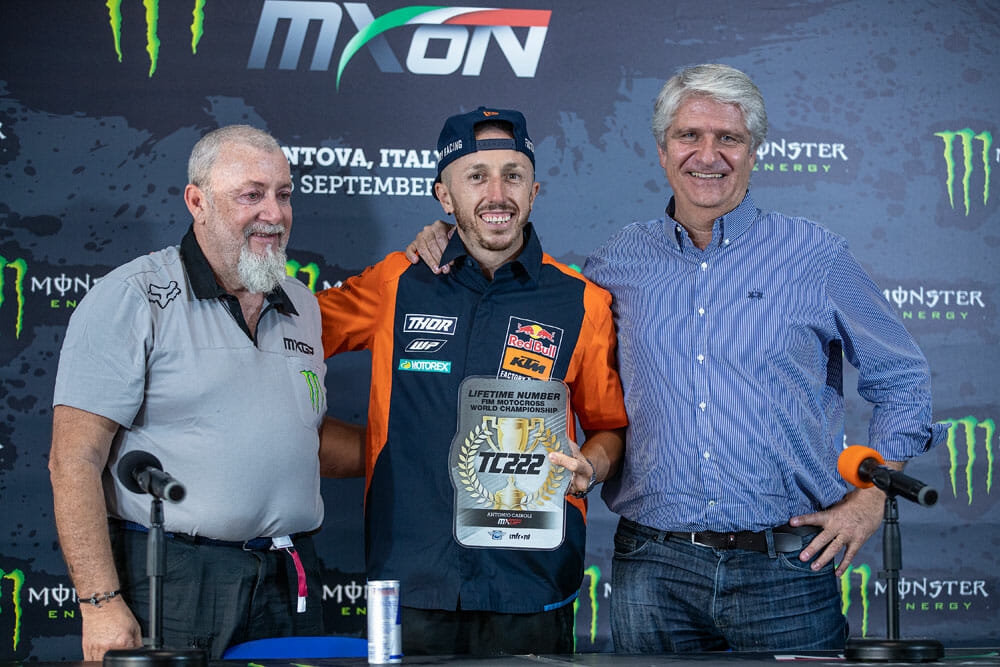 Pit Beirer, KTM Motorsport Director: “We’ve had the privilege to be part of Tony’s story since 2010. We know how much we value him as a person and as one of the best riders the sport has seen, and it special that the rest of MXGP feel the same way with this retirement of his number. #222 belongs to Tony. He owned MXGP for a time when he changed the game and brought so much dominance to the championship. He raised it to a new level for riders while also showing a passion for racing that allowed him to have such a long and amazing career. Thanks to Infront Motor Racing and to the FIM for making this gesture. It’s not often a remarkable athlete like Tony comes along.”