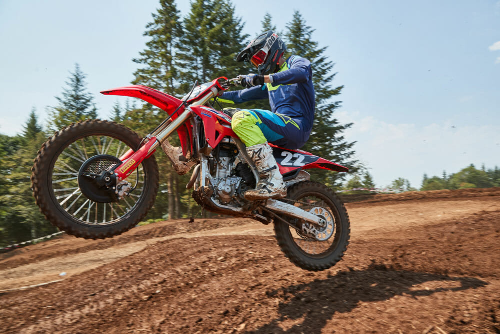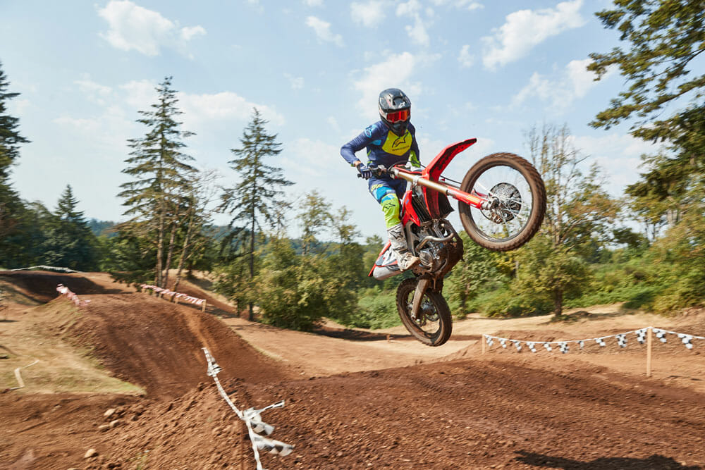 We first rode the ’22 CRF250R in Oregon at the picturesque Mountain View MX Park. It’s a tight and jumpy layout that uses natural elevation and, on this day, was covered with dark soil with a hard base. The Mountain View crew recently added 600 truckloads of Pacific Northwest mulch to the track, giving it that chocolate-cake look. We were definitely not in Southern California anymore.