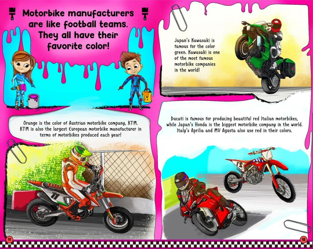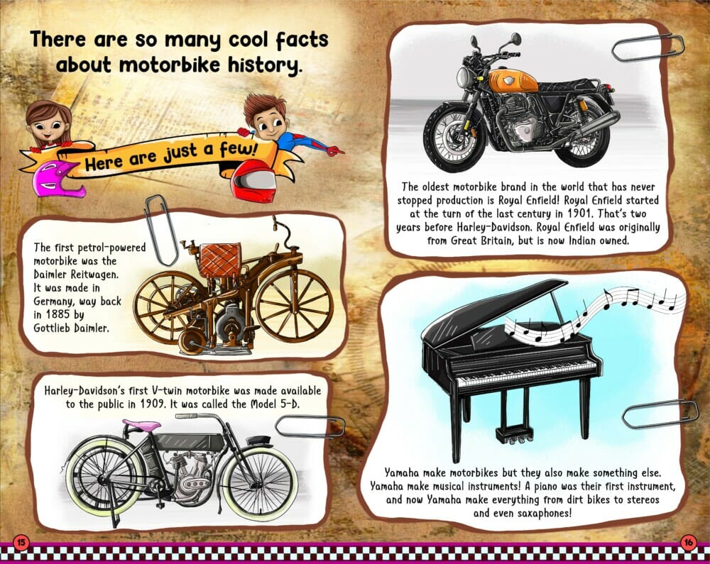 “Coming from a bike-mad family, I know the positive effects motorbikes can have on a child’s upbringing,” says Scaysbrook. “Bikes have been such an integral part of my family, and I wanted to pass that love via fun and informative education onto a new generation of bike riders. With a four-year-old son myself, I know each time I read him a bike book before bed I will have his full attention, so, in a way, it was a selfish little project to make this book! But I am happy with how The Big Book of Motorbikes turned out and the response from the motorcycling community has been overwhelming.”