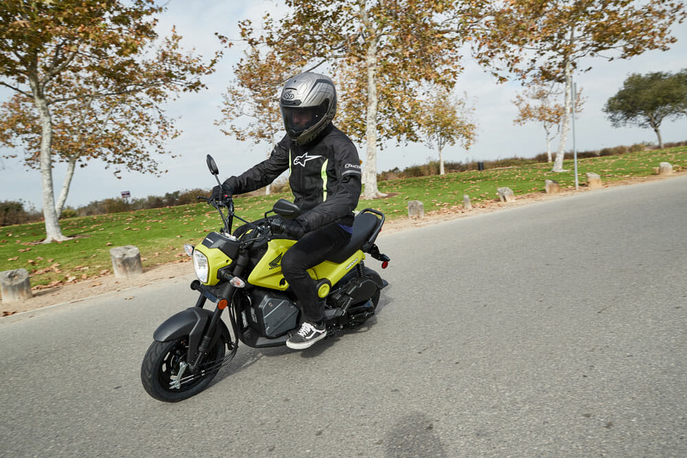What it might lack in “performance” it more than makes up for in the fun department. The Navi is perfect for riding around town and offers more power than a scooter but still less than something like a Grom. You can make passes with reasonable confidence and cruise at speeds of 40-50 mph with ease. While there’s no intimidating power at the throttle, the Navi still possesses enough juice to put a big smile on your face. The bike is super nimble and easy to turn and negotiate through traffic. Both the suspension and brakes leave a little to be desired, but they hold up good enough for local around-town speeds. Our crew clocked over 40 miles on the Navi, grinning for the duration of our trip.