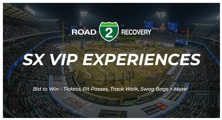 Road 2 Recovery Foundation has announced details for its auctions of personalized VIP experience for four at any of the 17 rounds of the 2022 Monster Energy AMA Supercross Championship.