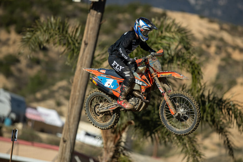 Elite Racing KTM’s Brandy Richards ruled the Women’s Pro class. She led every lap and finished five minutes ahead of her nearest class rival, FMF/RPM/KTM’s Kaitlyn Jacobs (KTM). Richards also finished third overall in the 250/450cc A-class field.