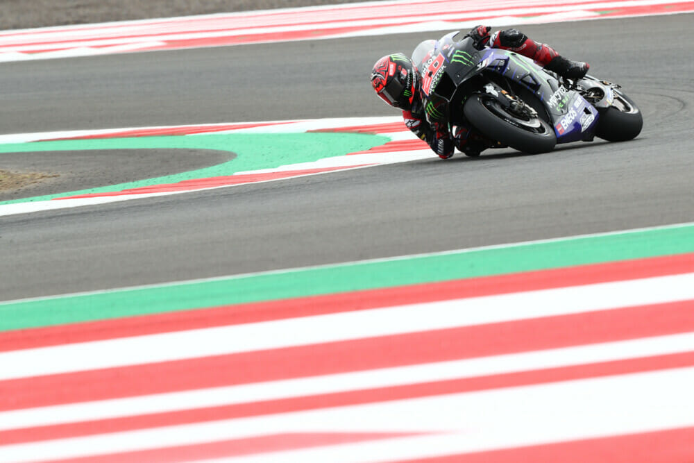Just two weeks after a rough debut as World Champion in Qatar where he finished eighth, Quartararo steadily worked his way up the timesheets over the FP2 session and put in a soft rear tire for the time attack, where he would eventually better teammate Franco Morbidelli by 0.03s with Pramac Ducati’s Johann Zarco third for the day, 0.285s further back.