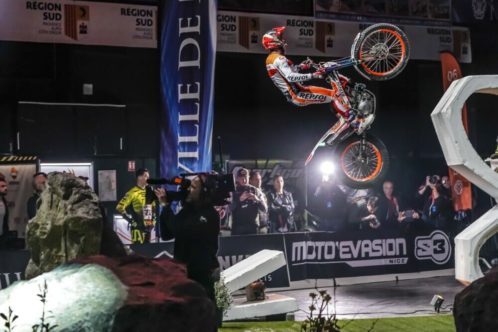 In the first qualifying phase of the new competition format, Toni Bou dominated his heat comfortably and came out of the first round on top, having accrued just one penalty mark. In the second qualifying round, the Honda Repsol Trial Team rider once again gave a fine display of technical prowess and domination, again notching up just a single penalty mark. In the final, Bou turned out another excellent showing, picking up a mere two marks compared to the thirteen of the nearest second-placed rider. The result proved more than enough to secure the top honours in Nice ahead of rivals Adam Raga and Matteo Grattarola.