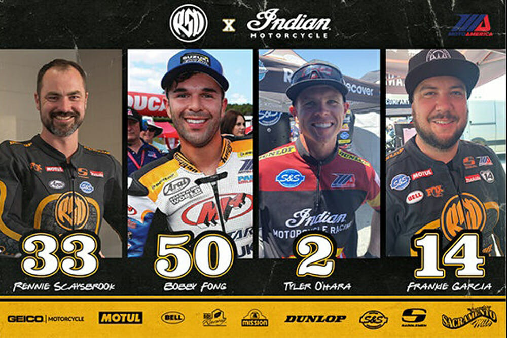 Roland Sands Design announces its race teams for the upcoming weekend of racing at Daytona. Cycle News‘ own Rennie Scaysbrook returns to Daytona to challenge for the Mission Foods Air-cooled American Twin Challenge title with the #33 Super Hooligan 2022 Indian Chief.