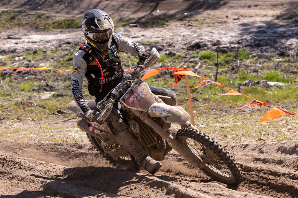After passing Jordan Ashburn (Magna1 Motorsports/Husqvarna), Kelley ran down Coastal Racing GasGas’ Ricky Russell on the first lap to take the lead and then, despite a couple of falls, steadily pulled away to a two-minute-11-second margin of victory.