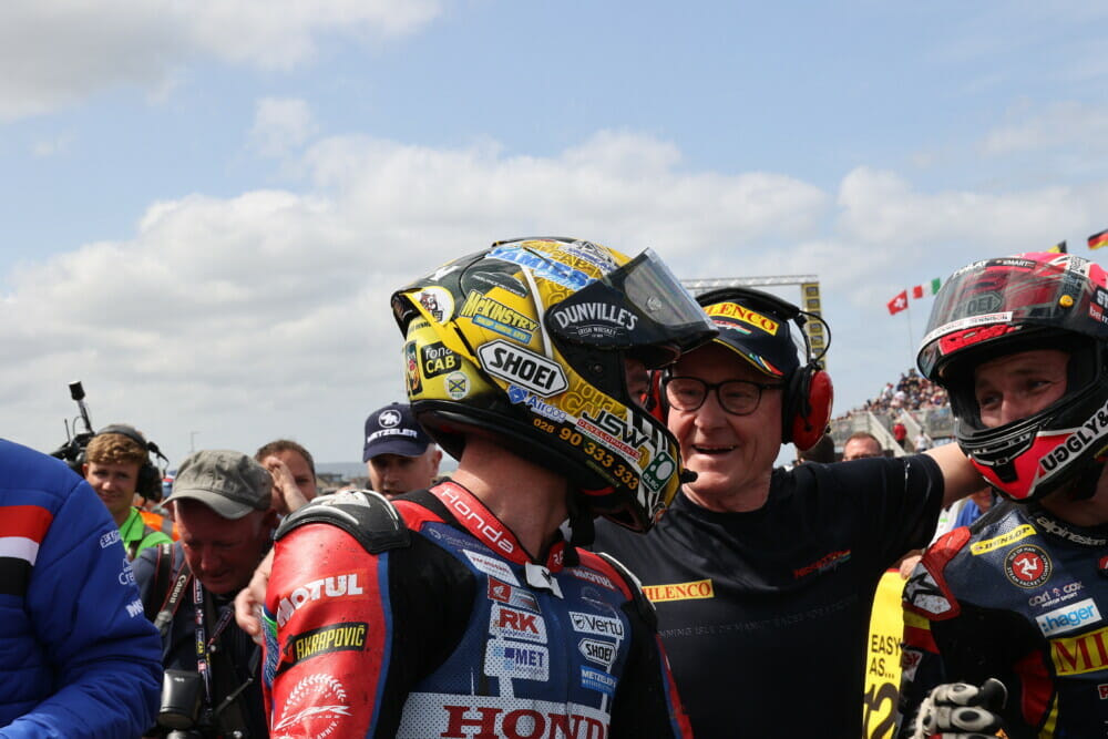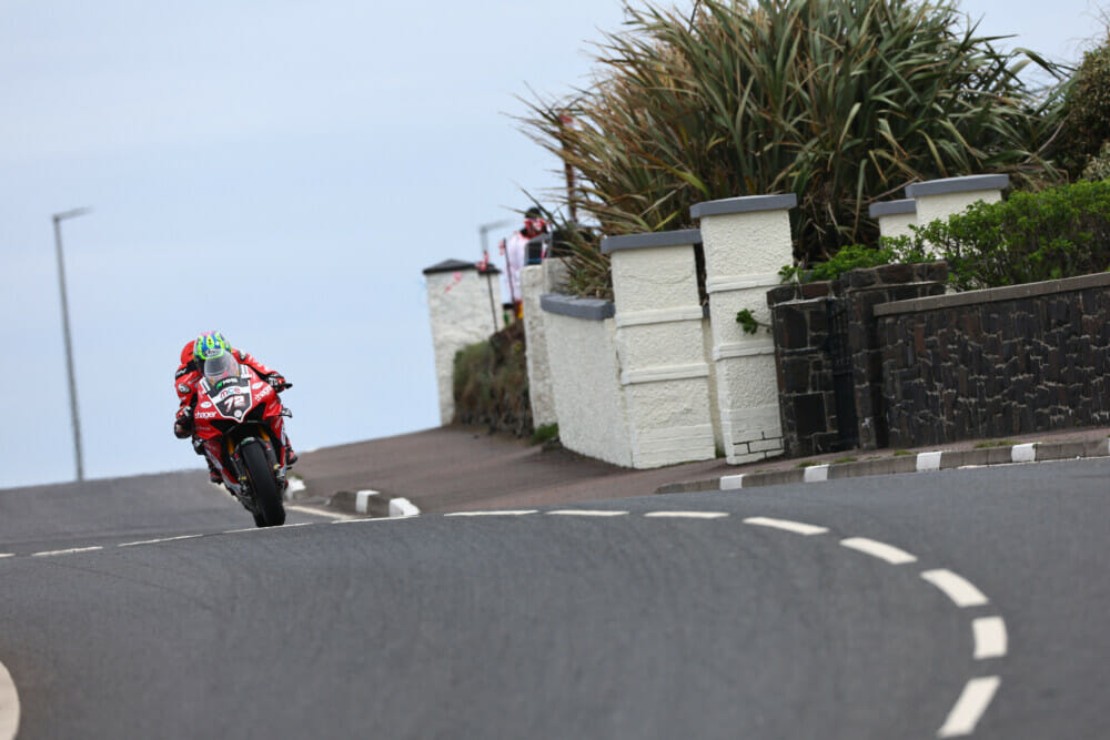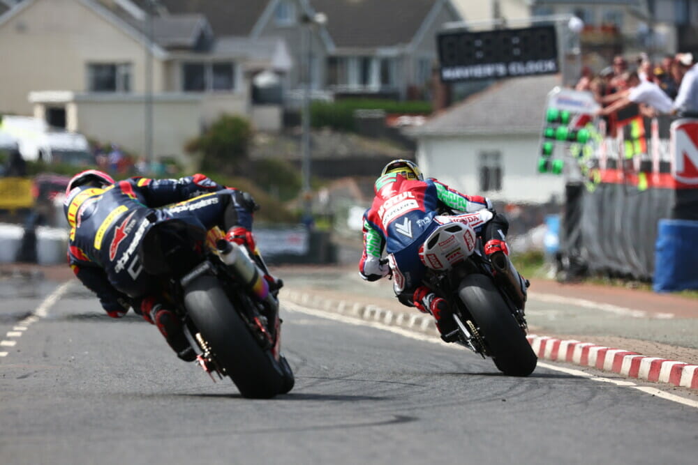 Irwin took the first race win ahead of Honda’s Davey Todd, taking the win by 0.253 seconds. The second race was laden with controversy after all 24 Dunlop riders pulled out on safety grounds. It was later revealed Dunlop found an issue with a batch of their Superbike tires, with images and video on social media circulating of tires coming apart at speed. Michael Dunlop very nearly lost control at over 120 mph when his tire disintegrated on the Coast Road. As a result, Dunlop pulled all its riders from the second Superbike race and only Metzeler-shod riders took part, with Todd, Peter Hickman, Brian McCormack, Lee Johnston, Michael Dunlop, Connor Cummins and Dean Harrison all absent from the start.