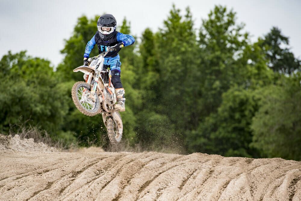 Made with dual-mesh material that is engineered to allow airflow while filtering out dirt, the racewear is cut in a standard fit. An extended tail helps keep the jersey tucked in, and the pants include Fly’s Adaptive Waist System (AWS), which is a ratcheting closure with a zipper lock that keeps pants closed and secure.