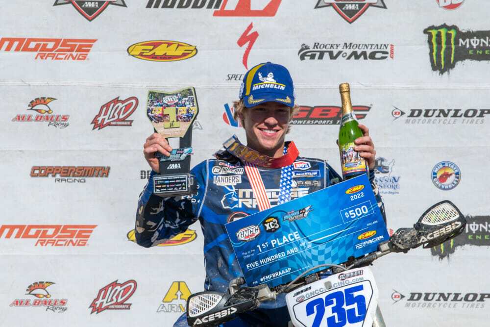 Magna1 Motorsports/Husqvarna’s Brody Johnson claimed his fifth win of the season in the FMF XC3 125 Pro-Am class with XC/Moose Racing/XC Gear’s Zack Hayes in second and Husqvarna-mounted Jake Froman in third.