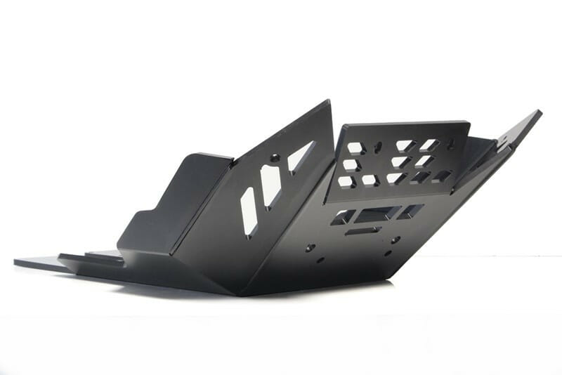 Made of 8mm-thick HDPE plastic, this skid plate from AXP Racing fits 2021-22 KTM 1290 Super Adventure R/S models and protects the engine block and other important parts on the lower part of the bike.