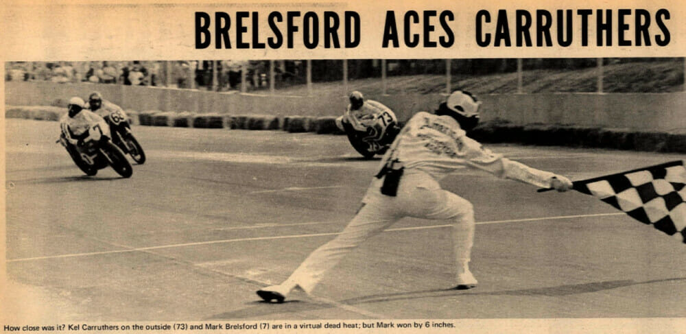 The race came down to Cooper and Carruthers. The two swapped the lead numerous times in the closing laps. Carruthers led coming out of the final turn, but almost predictably now, Cooper’s BSA 750cc Triple had the power advantage, and he passed Carruthers just before the line. That gave Cooper the overall victory and the $14,500 prize money (about $106,000 in today’s money).