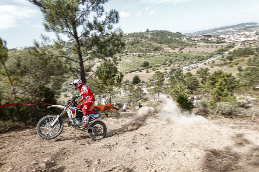 Making the Enduro1 class his own in 2022, Andrea Verona marched on to his eighth consecutive victory of the season in Portugal. The battle for the remainder of the podium was tight, with Samuele Bernardini (Honda) taking the runner-up result by less than three seconds over Thomas Oldrati (Honda). Matteo Cavallo (TM Racing) was only a further five seconds behind in fourth.