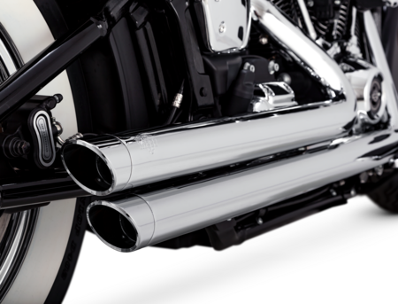 The Vance & Hines’ exclusive Power Chamber Exhaust technology uses a high-flow double-matrix catalyst that improves torque delivery through the mid-range rpm, which delivers more responsive acceleration. The catalyst positioning is deeper into the exhaust system moving catalyst heat further away from the rider and improving rider comfort over a stock system. The new technology produces an even deeper full-throated rumble while retaining the sculpted styling of each of the exhaust systems.