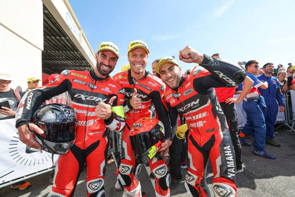 However, the Superstock win at Le Mans and a second place at Spa-Francorchamps were enough to secure the title for the Yamaha-powered team, which counted on riders Baptiste Guittet and Hugo Clere from France plus Austrian Philipp Steinmayr.
