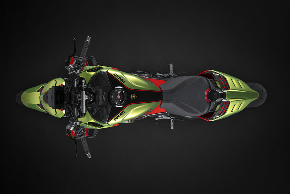 In addition to the 630 Verde Citrea/Arancio Dac units, Ducati is offering an even more exclusive series of 63 bikes, called Speciale Clienti, which are only available to 63 Lamborghini customers. Through direct collaboration with the Centro Stile Ducati, the customer will be able to configure their Ducati Streetfighter V4 Lamborghini Speciale Clienti with body colors and wheels exactly like their Lamborghini. It will also be possible to choose the colors of the brake calipers among those included in the palette (Yellow, Red, Black and California Orange, in addition to the standard color) and the details of the saddle among the four available versions.
