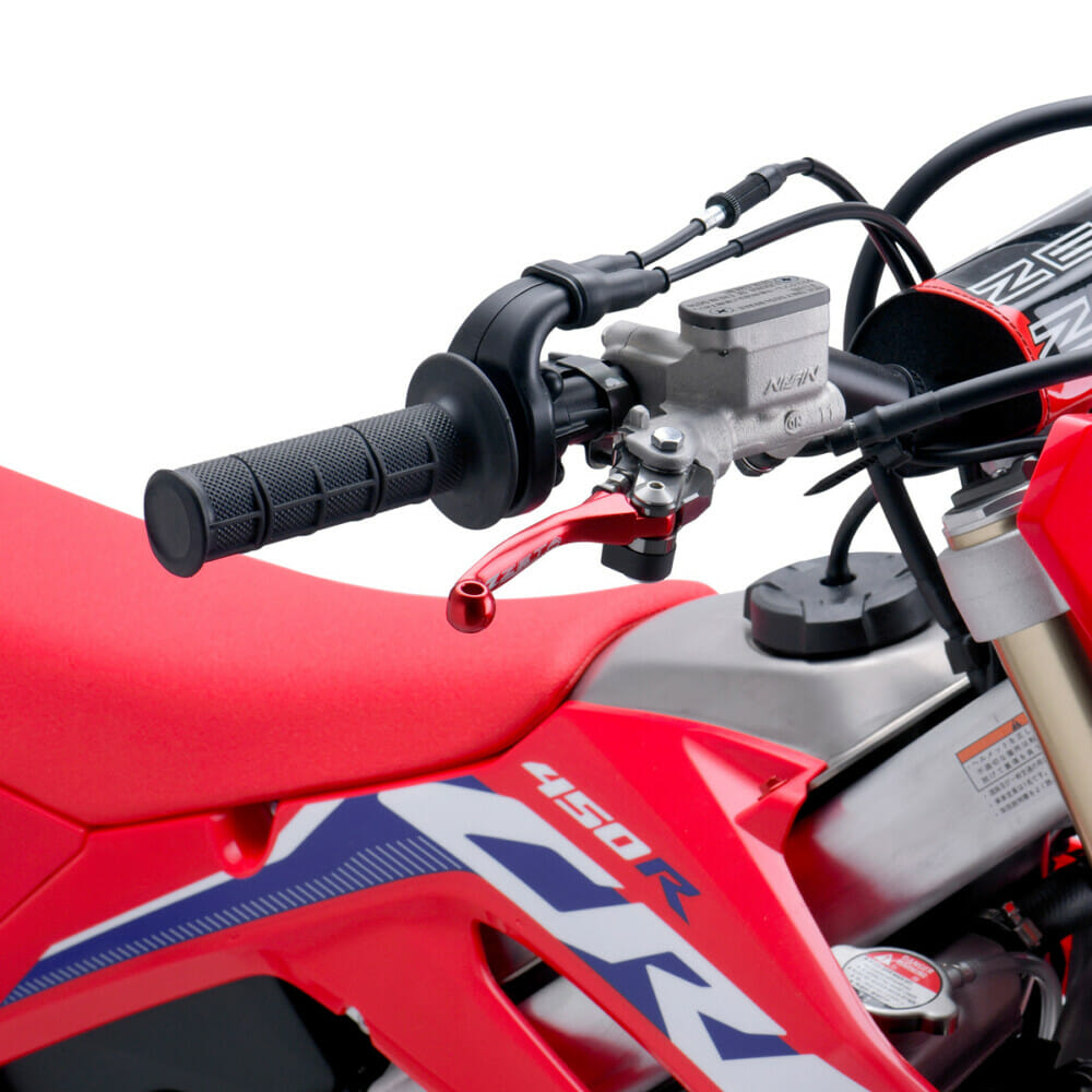 The Pivot CP clutch- and brake-lever sets from Zeta are for trail motorcycles. They are designed to fold outward to reduce the chance of breakage in the event of a crash. The levers are CNC machined from a high-grade, lightweight aluminum and come in OEM-matching red, blue and black. The levers come in three- and four-finger lengths, plus Zeta also offers a FP pivot lever, which comes with a forged lever arm for extreme durability, and has a smooth surface for racing use. MSRP ranges from $97.95 through $138.95.