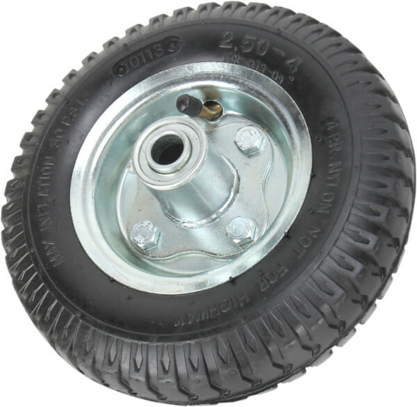 - Pneumatic, rubber wheels with ball bearing hubs stand up to generations of use