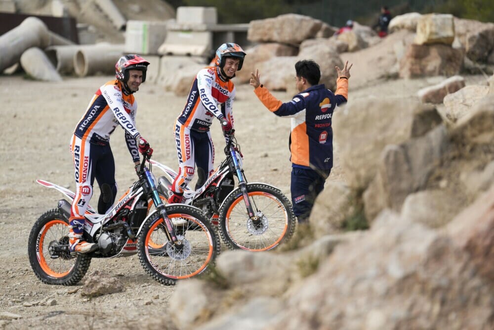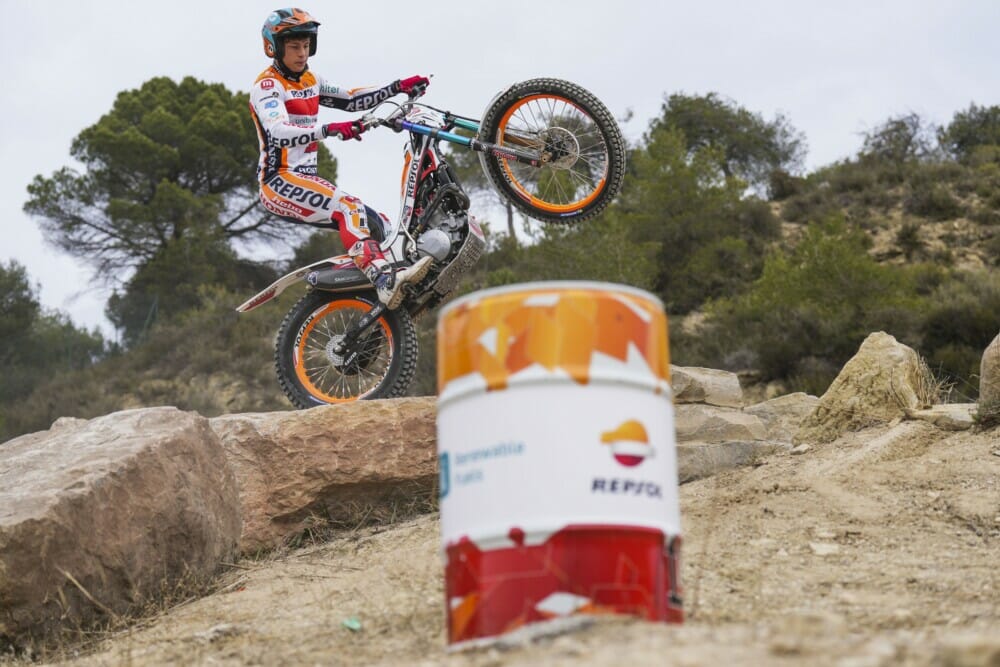Repsol Honda Trial Team—Toni Bou and Gabriel Marcelli—performed their first test with renewable competition biofuel, designed and produced at Repsol Technology Lab.