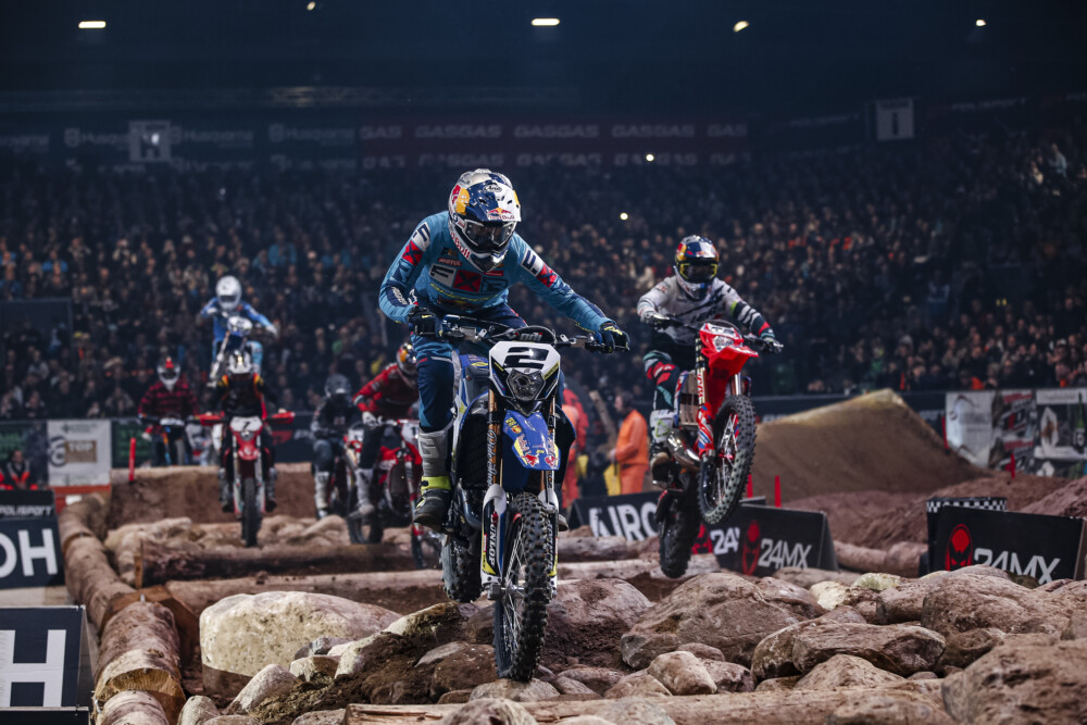 Billy Bolt came away with the overall win in Riesa, Germany, January 7, for round two of the FIM SuperEnduro World Championship. But it wasn’t pretty.