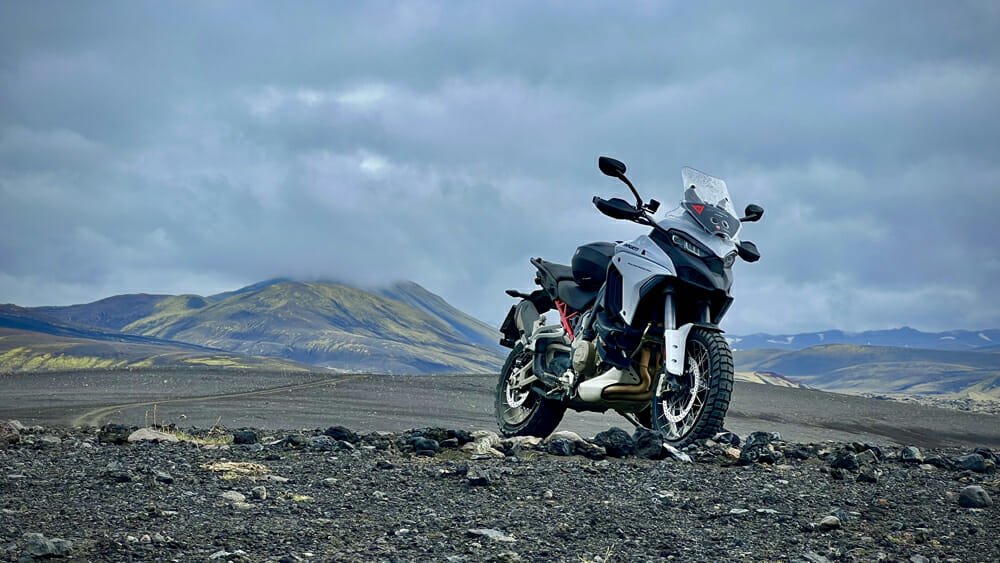 Hekla has a landscape so far removed from anything I’ve ever seen I may as well be on Mars. Charred rock that was once molten lava rippled from the wind that stretches a thousand years lies on either side of the track as we attempt to turn our Ducati Multistrada V4 S machines around and back down to the starting point. We’ve been made very aware that Helka doesn’t want us to go any further.