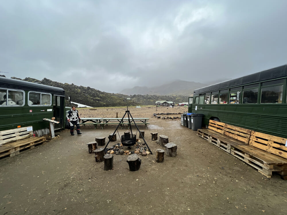 The three converted school buses that make up the Mountain Mall at Landmannalaugar is a must-see stop.