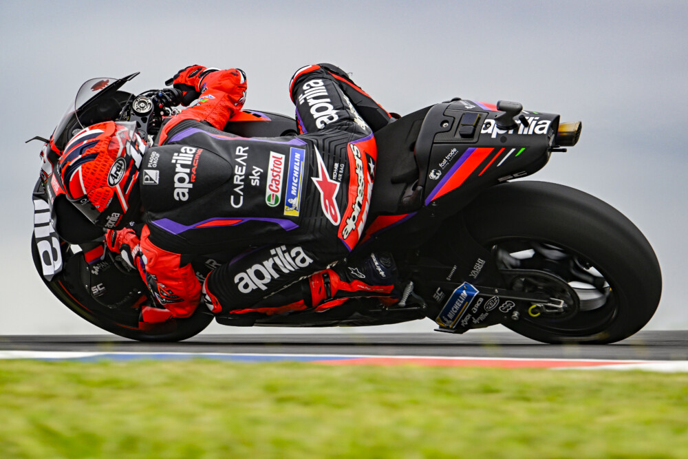 First and second in Practice 1, first and second in Practice 2 – it doesn’t get any better than that for Aprilia Racing as Day 1 at the 2023 Argentinian MotoGP belonged to the Noale factory. Ending Friday on top was Aleix Espargaro after the 2022 Termas race winner got the better of teammate and Practice 1 pacesetter Maverick Viñales in the afternoon session, while Portuguese GP podium finisher Marco Bezzecchi (Mooney VR46 Racing Team) claimed third.