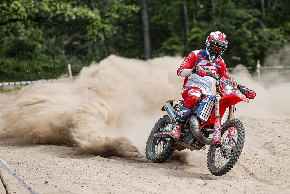 Beta’s Steve Holcombe and KTM’s Josep Garcia both spent time at the top of the box during the FIM EnduroGP of Sweden, June 2-4. Garcia kicked things off with the overall victory on day one, but Holcombe came back to win day two.