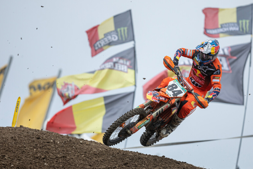The Husqvarna-mounted Coenen took off with the race lead and let the rest of the MX2 field duke it out for the podium. Everts and Roan van de Moosdijk battled for second and third, but Van de Moosdijk eventually hit the deck and dropped to fifth. This allowed the KTMs of Everts and Adamo to round out the podium. De Wolf and Geerts both finished outside the top 10.