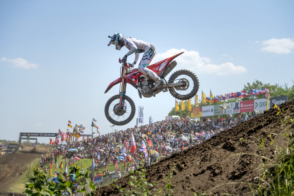 The famous hard-packed conditions of Teutschenthal, Germany, June 10-11, set the scene for round nine of the FIM Motocross World Championship, where GasGas’ Jorge Prado nabbed his first 1-1 of the season and Liam Everts claimed his first career race win and overall victory. In doing so, Prado extended his championship lead in MXGP and Everts chalked up another milestone grand prix victory for the Everts name.
