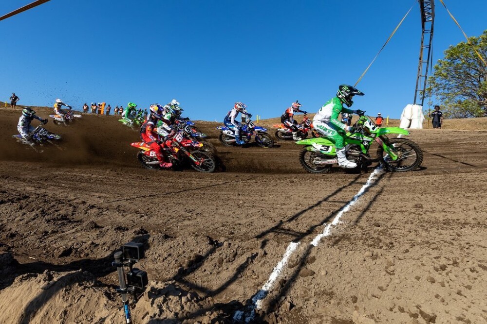 The MX2 division is still anyone’s to win. The early-season points leader, Jago Geerts, is back from injury and holeshotted the first moto of the day. The Yamaha rider led early on but fell on lap two and dropped back to sixth. He remounted but only went on to salvage fifth at the checkers.