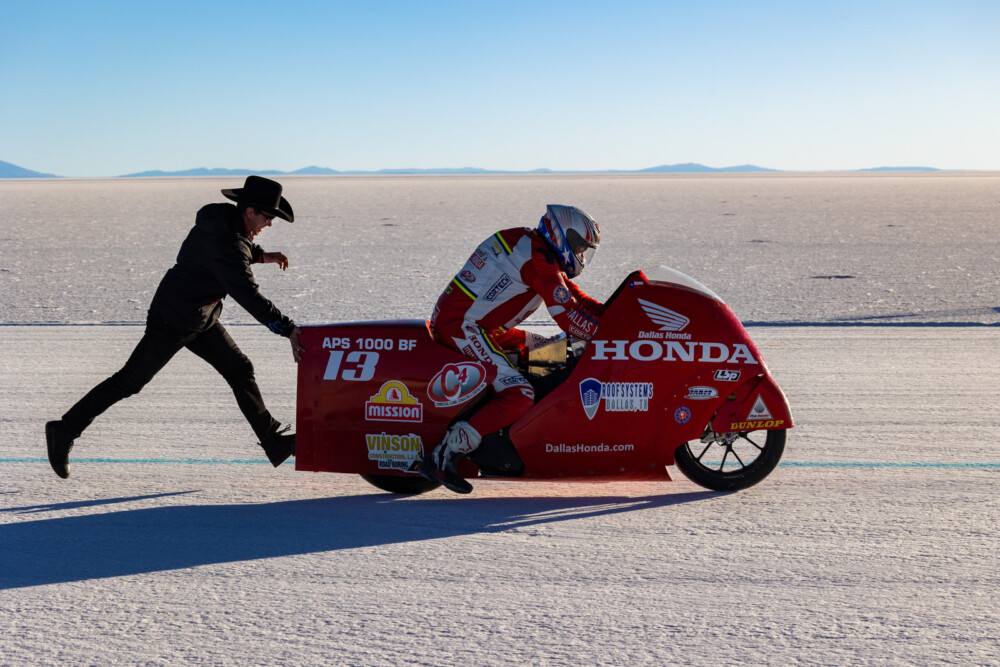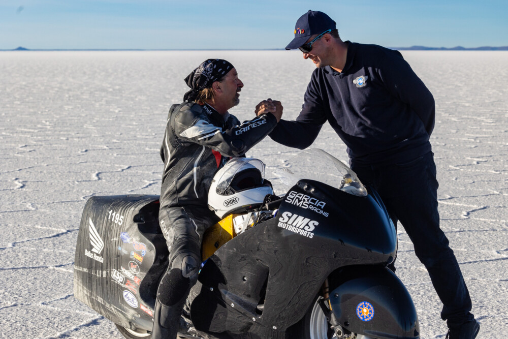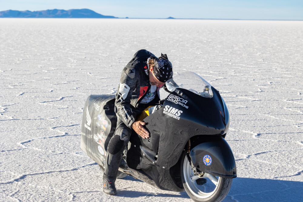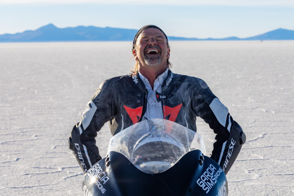 Land-speed racers were all smiles upon first setting foot on the Salar de Uyuni on August 14 for the 2023 Bolivia Speed Trials. Ideal salt conditions and a shimmering 15-mile track with hardly a whisper of wind in the air were exactly what competitors were hoping to find after traveling from around the world for the third-ever FIM-sanctioned Land Speed World Records event in Bolivia.