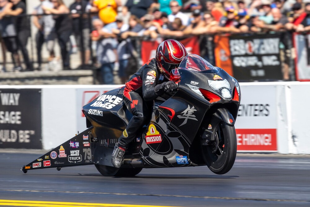 Smith also knocked off Chris Bostick, Marc Ingwersen and teammate Jianna Evaristo to reach the final round and picked up his 38th career victory a round later. With five races remaining, Smith now holds a 17-point lead over Vance & Hines’ Suzuki’s Gaige Herrera.