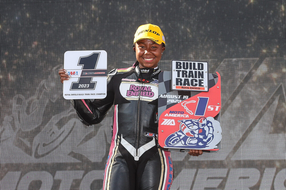 In addition, in round eight, Avery Dreher clinched the Junior Cup championship on his Bad Boys Racing Kawasaki and in the hands-on Royal Enfield Build. Train. Race. Championship, rider Mikayla Moore swept all seven races in the series to dominate her championship.