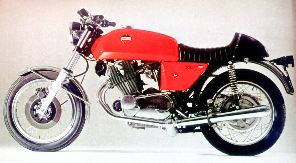 The initial design was a 650cc parallel-twin, which would later grow up to be a 750. The company began importing into the U.S., where some of the machines would be rebranded as “American Eagle.” It was such a machine that daredevil Evel Knievel rode it before making the leap to Harley-Davidson in the early 1970s.