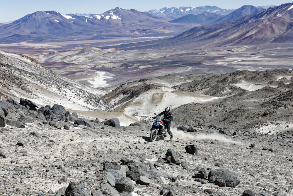 The expedition involved an acclimatization route ascending the Circuito de los Seis Miles, on the slopes of Nevado Ojos del Salado, located exactly on the border between Argentina and Chile. At 6891 meters, it is the highest active volcano in the world, and its twin, the Nevado de Incahuasi, 6610 meters high. The BMW R 1300 GS equipped with Metzeler Karoo 4 tires then descended to sea level on the shores of the Pacific Ocean, in Bahia Inglesa. They departed at 3:00 PM local time on December 6th, crossing the Atacama Desert to reach Nevado Ojos Del Salado, successfully surpassing 6000 meters above sea level in less than 24 hours. The goal was achieved at 10:22 AM on December 7th.