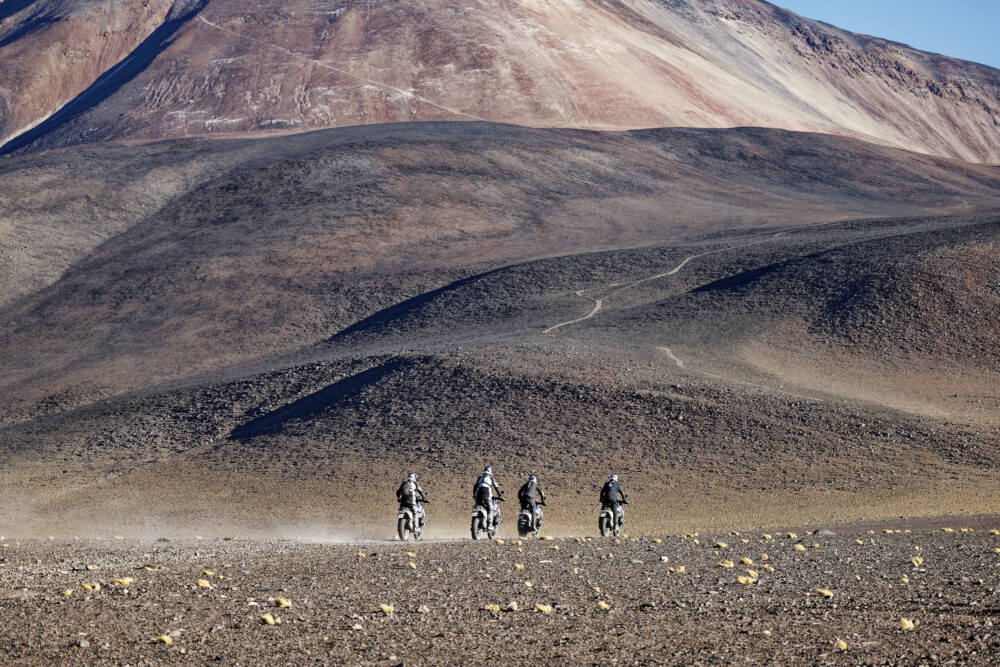 Stock motorbikes and standard tires took on an extreme challenge. A team representing the Metzeler brand and BMW Motorrad, riding a fleet of BMW R 1300 GS equipped with Metzeler Karoo 4 tires, reached, and surpassed 6000 meters above sea level, starting from the sea, in less than 24 hours. A very difficult ascent for riders, motorbikes, and tires, culminated on the notorious North face of Nevado Ojos del Salado, where the expedition reached 6006 meters in just 19 hours and 22 minutes, ultimately reaching a maximum altitude of 6027 meters.